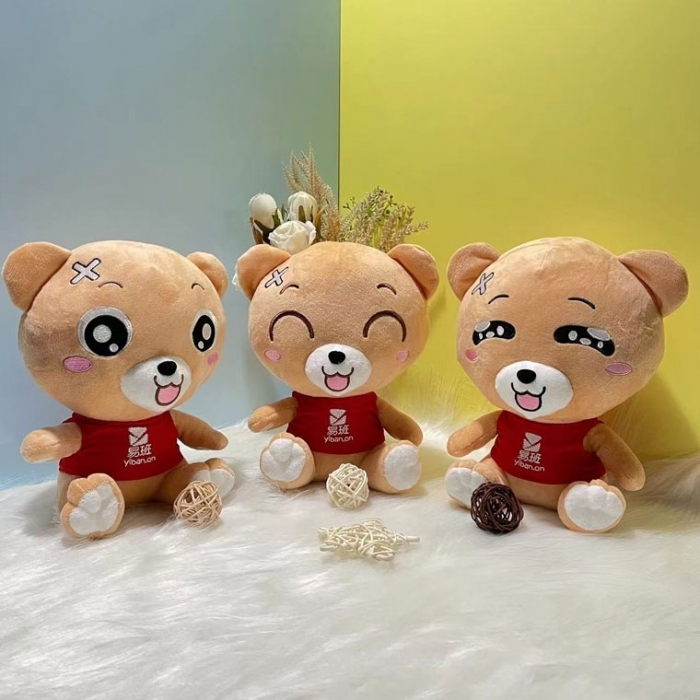 小熊红色马甲上可定制学校LOGO,定制工艺支持刺绣和彩印。通常简单线条LOGO可做刺绣,复杂LOGO或彩色LOGO可彩印。下单后可免费出效果图,定制内容联系郭老师QQ:107466223 微信:guocheng8852