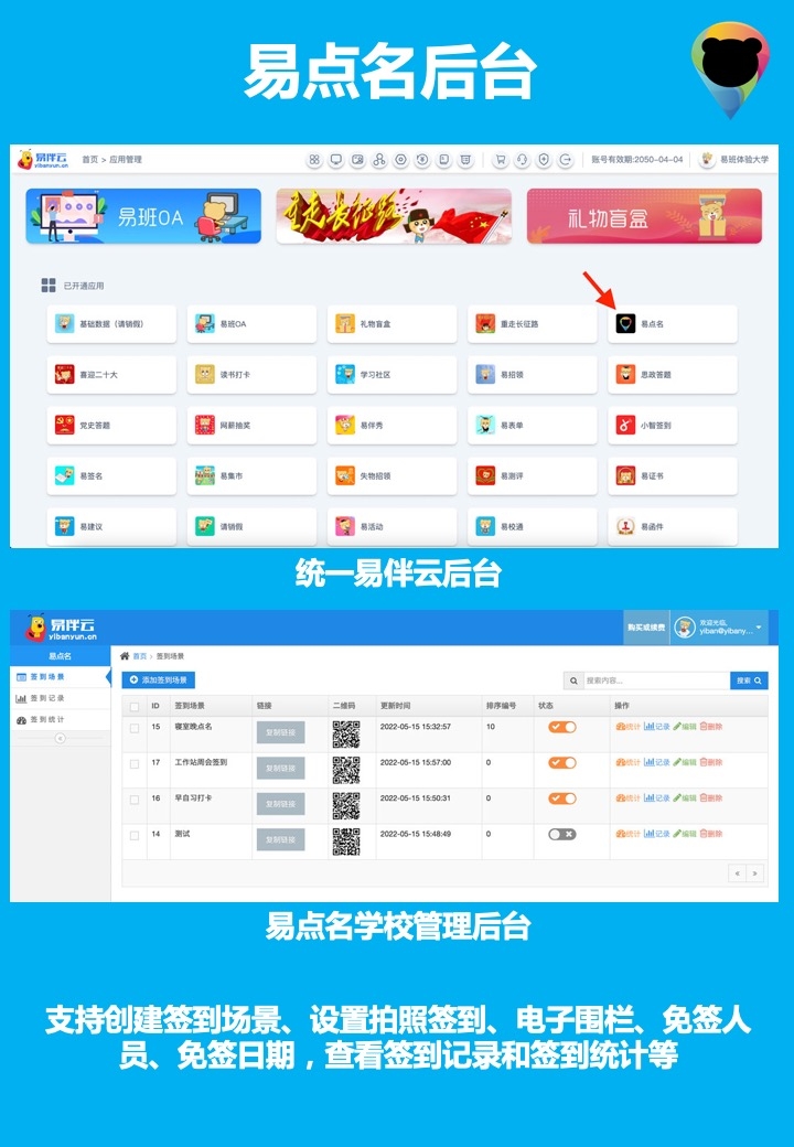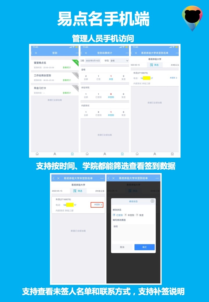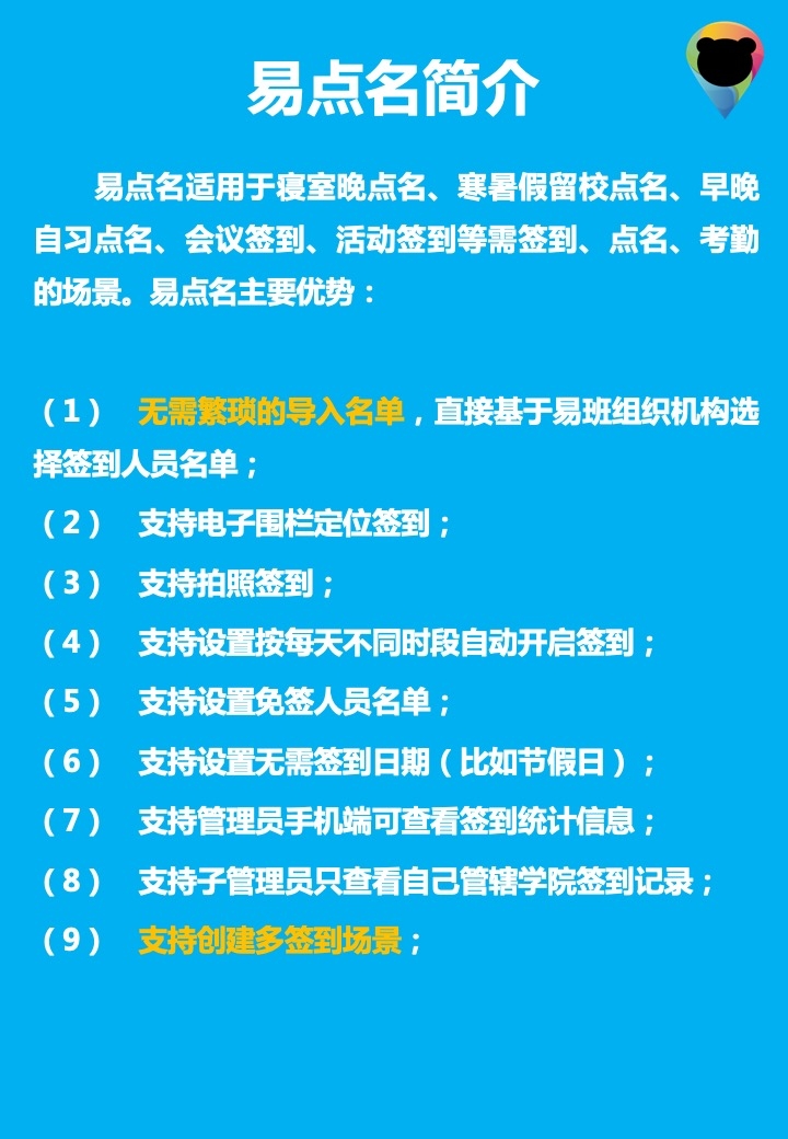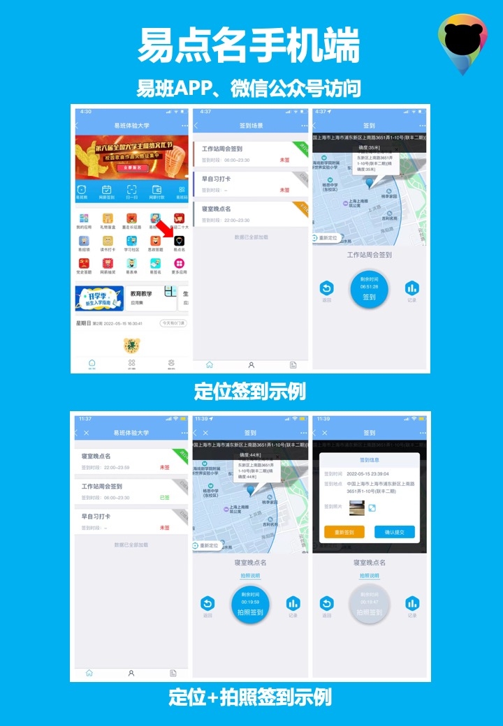 适用于寝室晚点等各种签到/点名/考勤场景